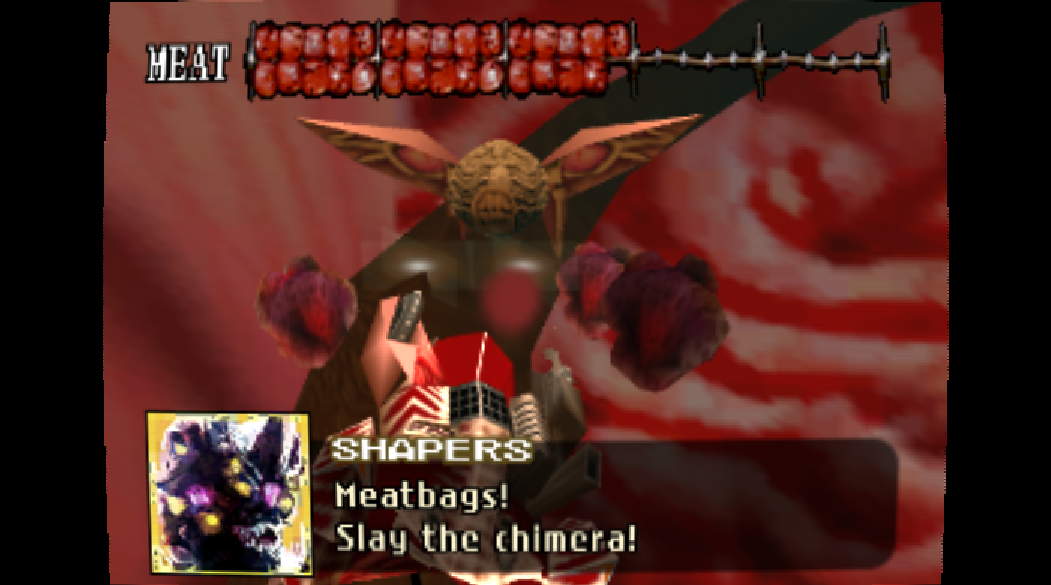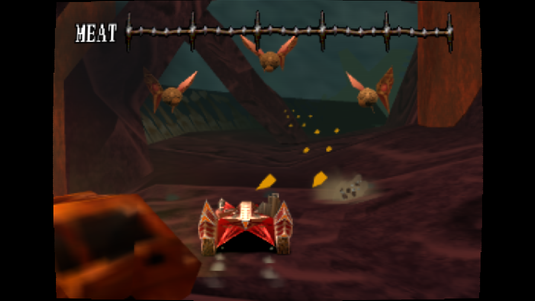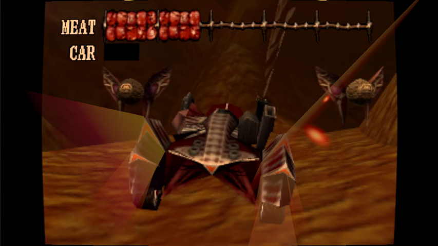 Star Fox meets Doom in this non-stop retro rail shooter. Collect MEAT and use it to grow new and deadly upgrades. Find secret routes to unlock MEMENTOS and piece together DEEP LORE. It's in all caps because it's that EXTREME.